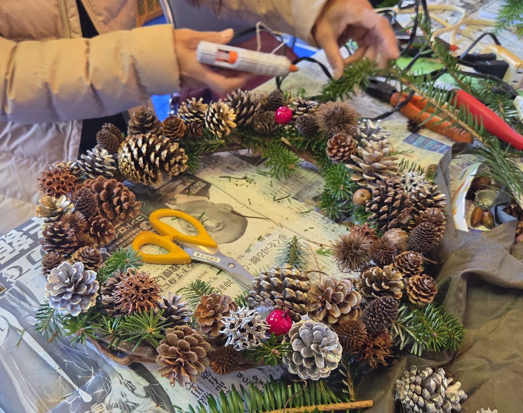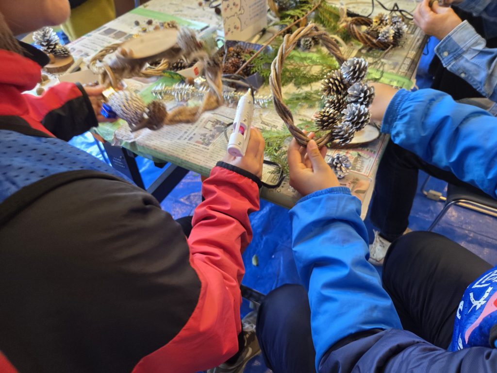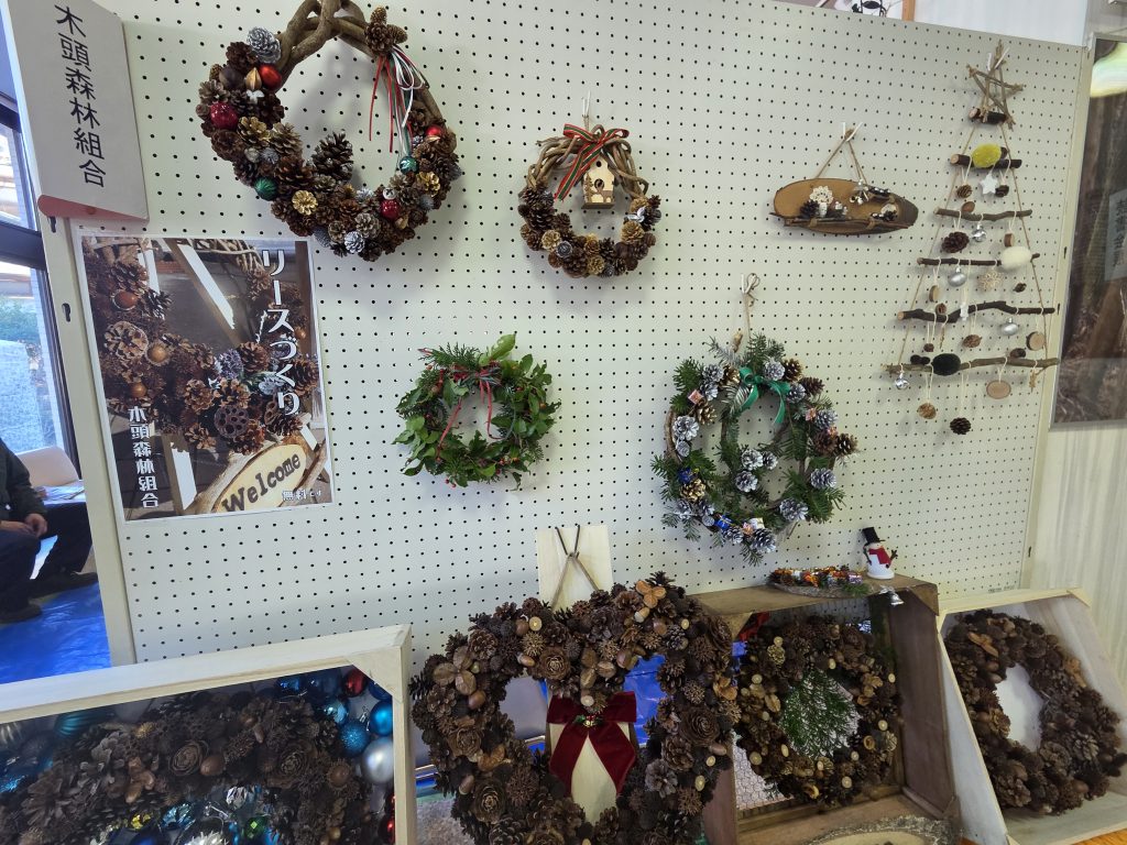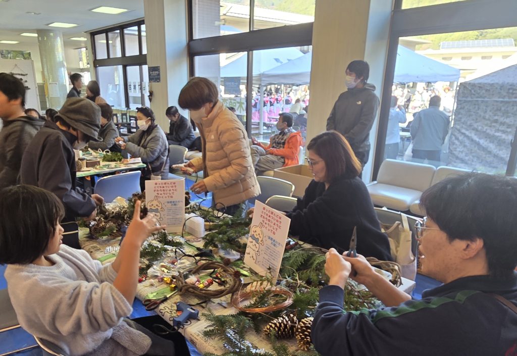 木頭森林組合ブースでは毎年恒例のリースづくりを行いました。