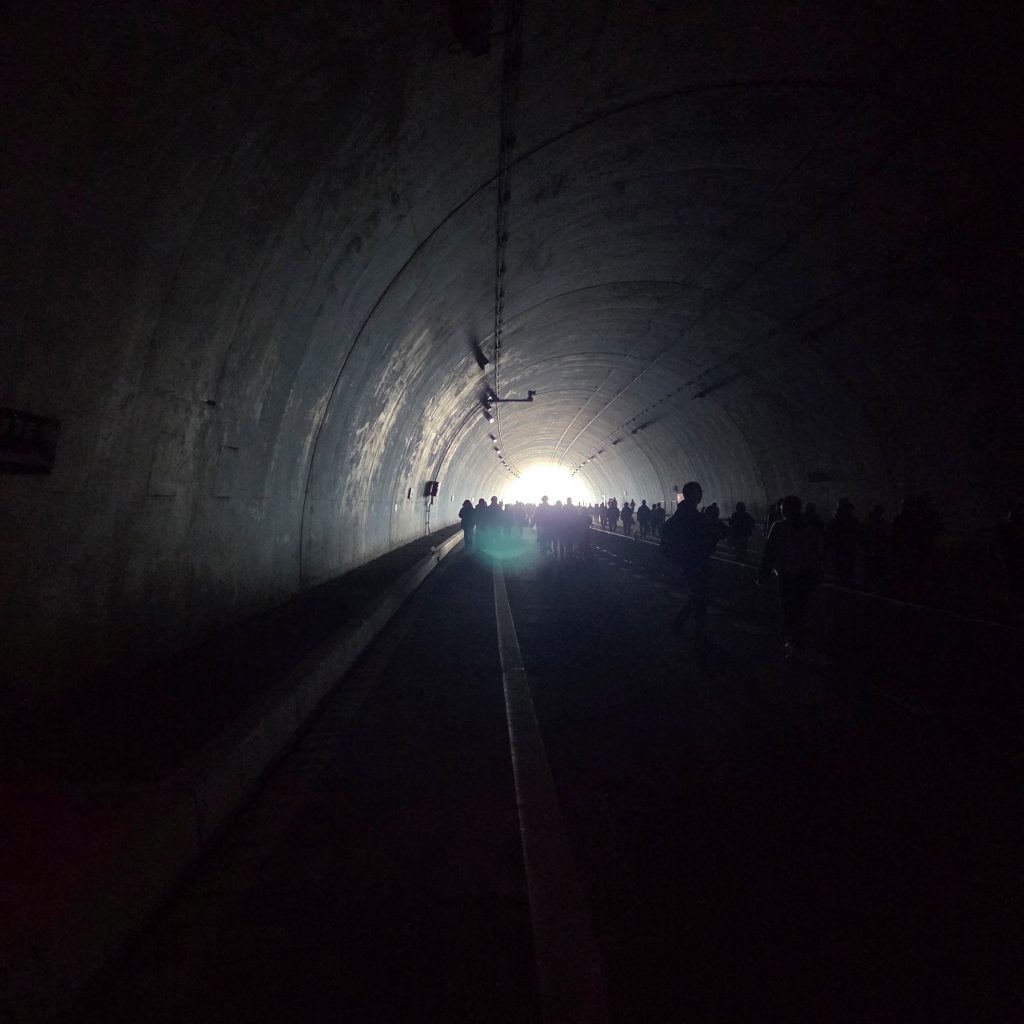 中央付近以外のトンネル内は真っ暗。