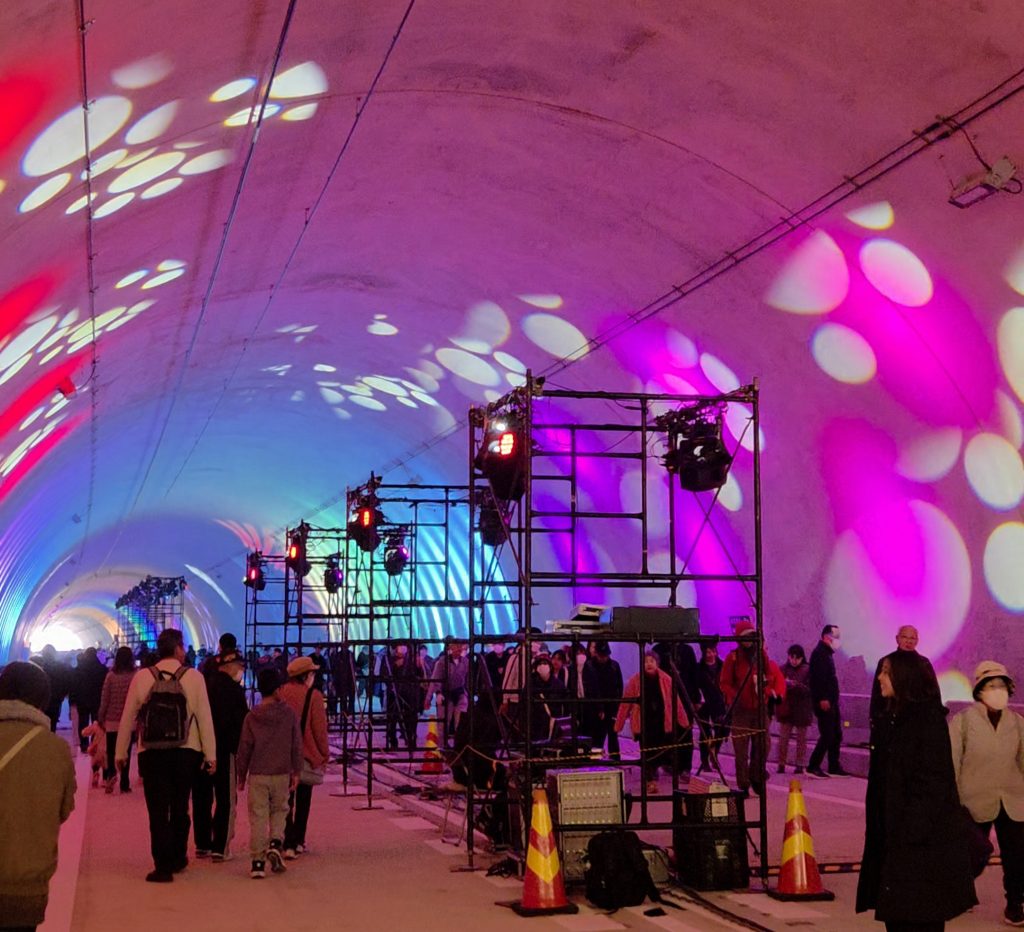 トンネル中央付近は、ライトアップされてパーティ状態。